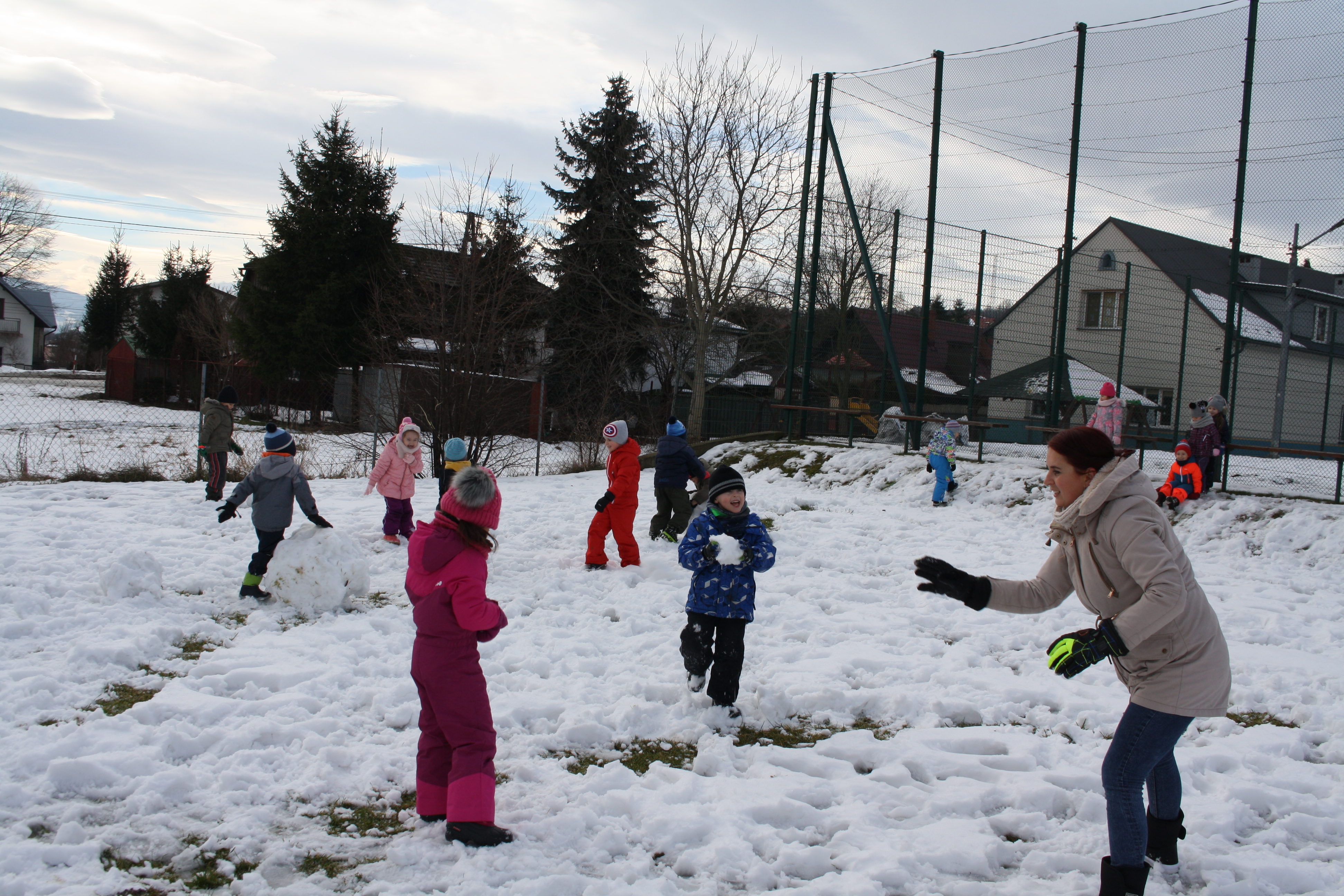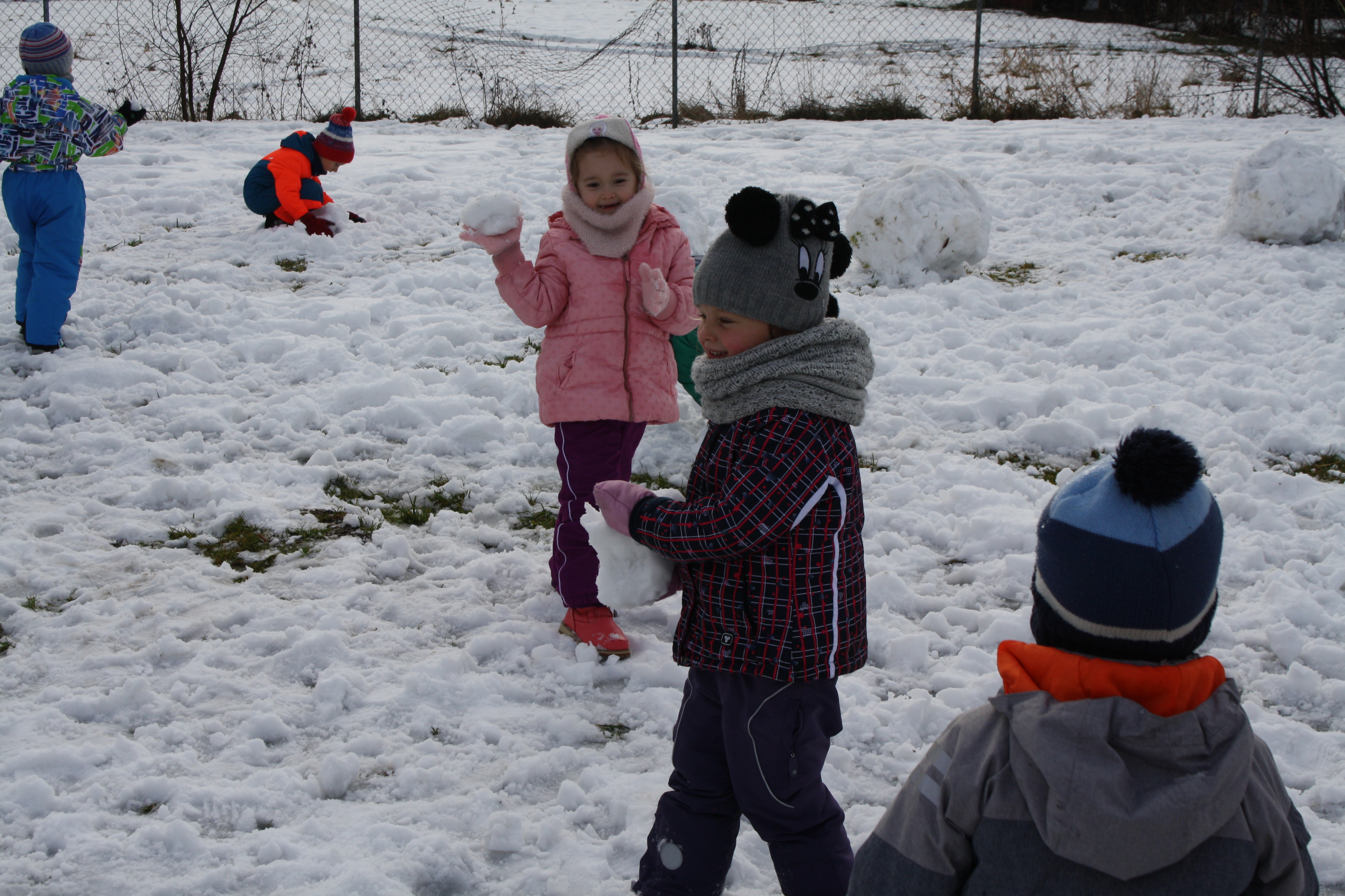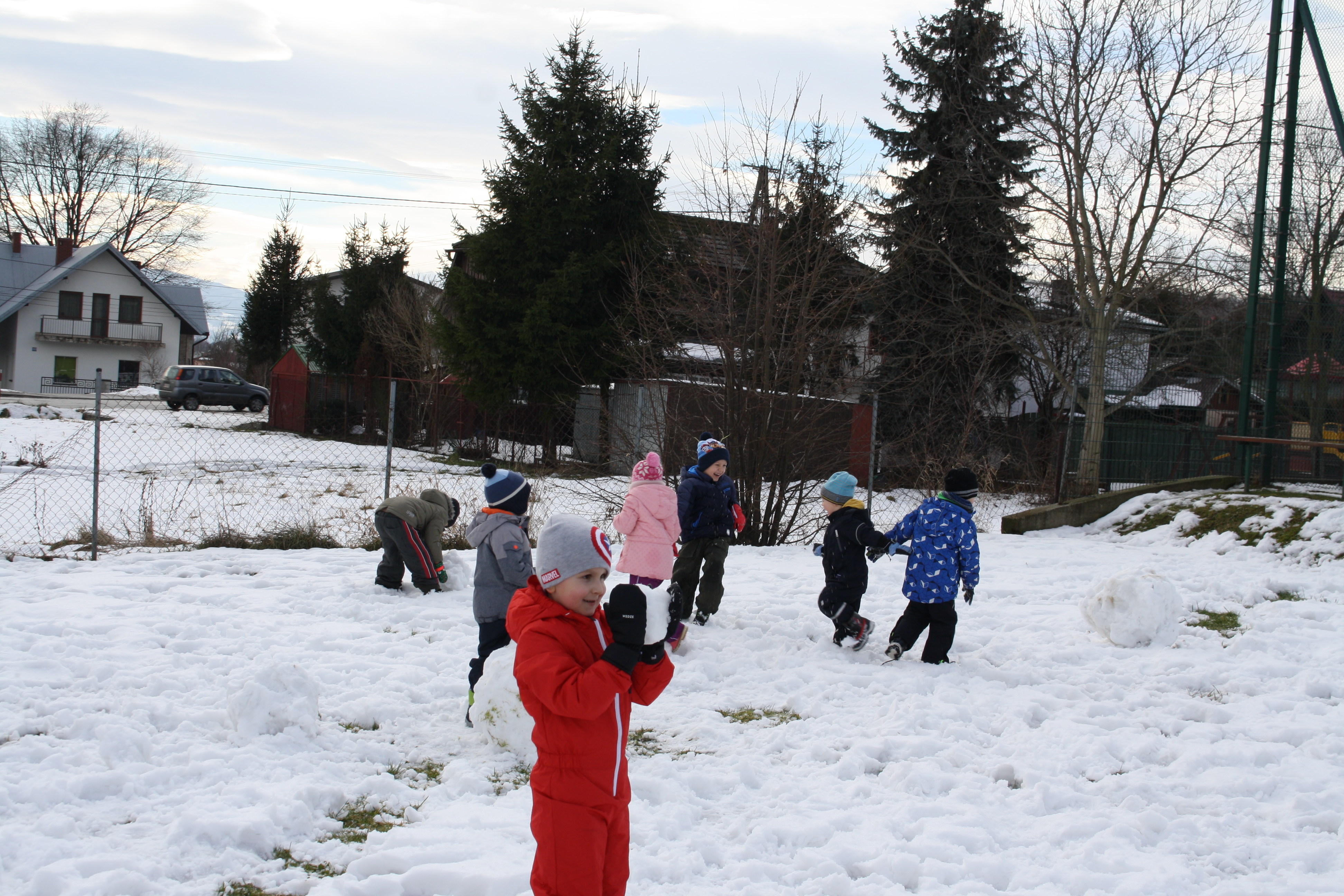 Tegoroczna zima płata nam figle, raz jest ciepło, a raz mroźno. Dlatego korzystając z jej uroku postanowiliśmy pobawić się na śniegu w naszym przedszkolnym ogrodzie. Dzieci oddały się zimowemu szaleństwu, chętnie lepiąc bałwana, rzucając śnieżkami do siebie, a także „atakując” kulami śniegowymi swoje panie (oczywiście zachowując zasady bezpieczeństwa). Z czerwonymi noskami i z uśmiechem wróciliśmy do przedszkola na ciepły posiłek. Było wesoło i radośnie