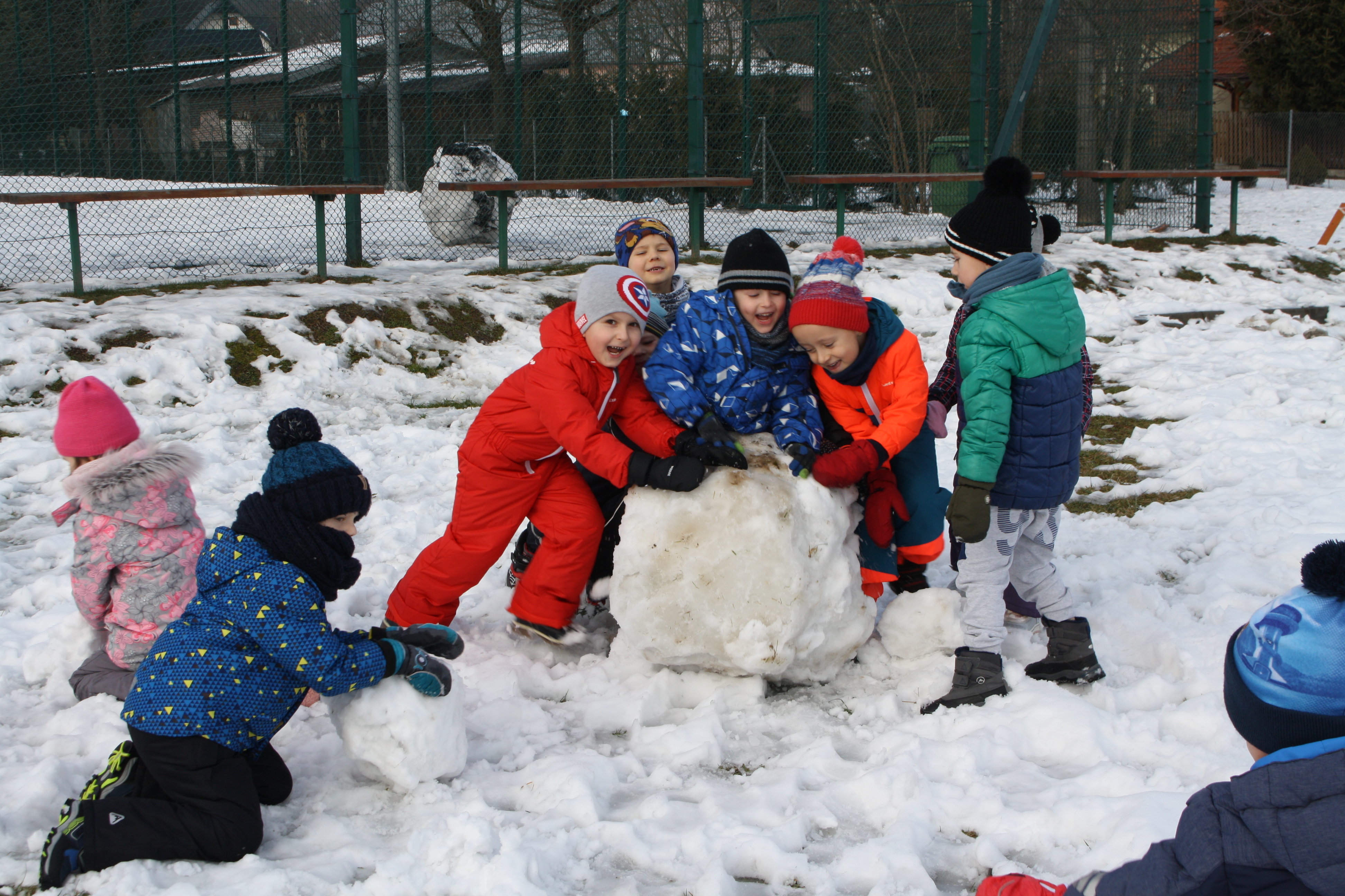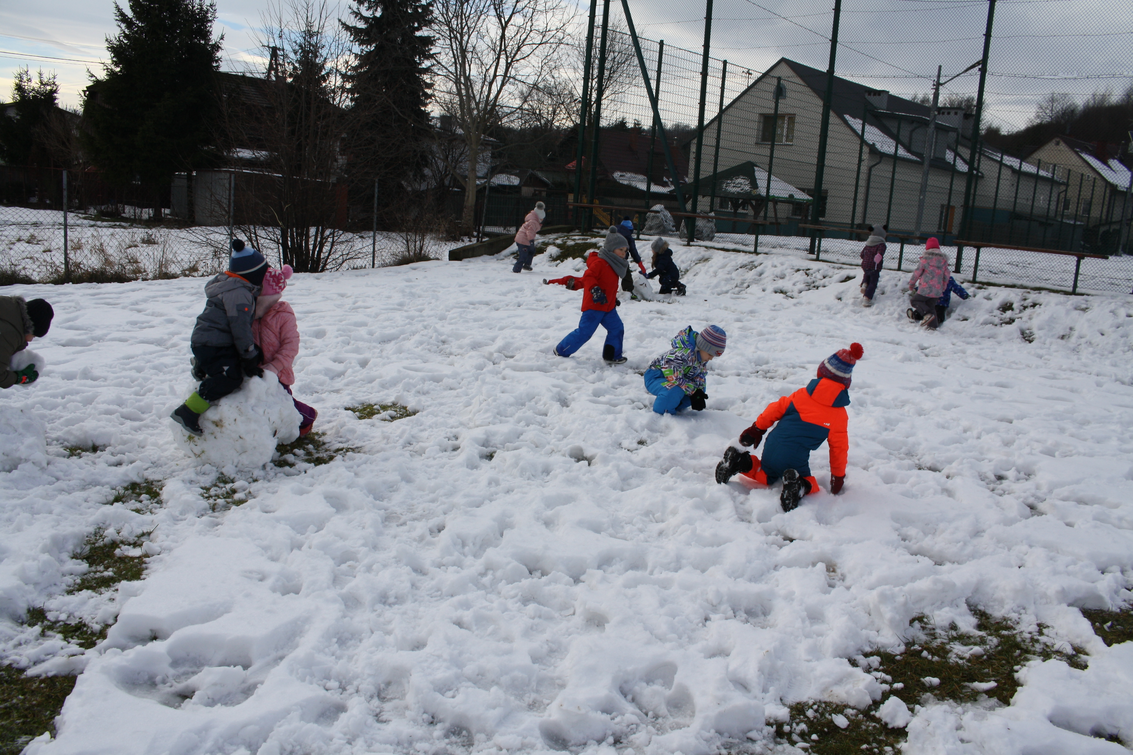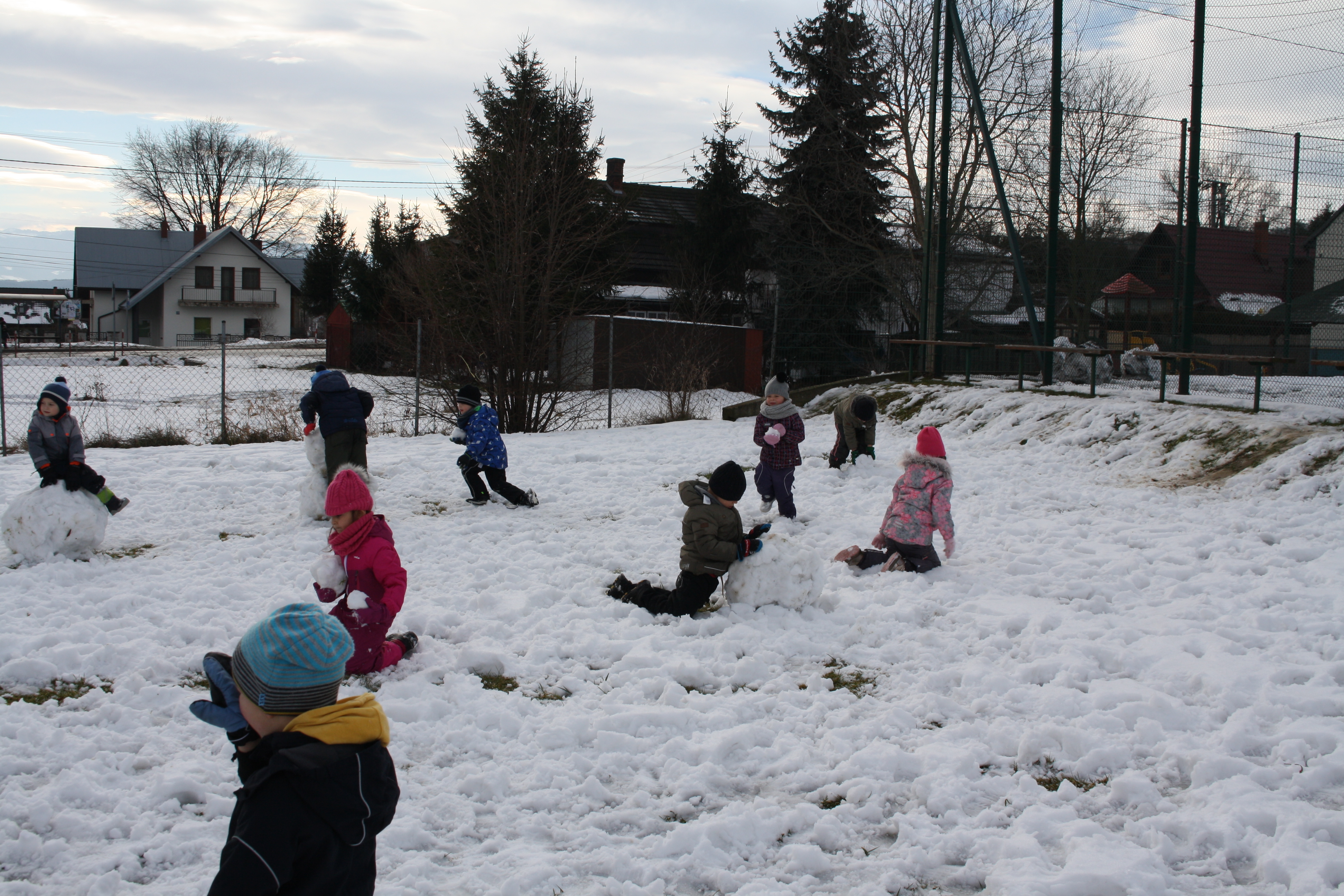 Tegoroczna zima płata nam figle, raz jest ciepło, a raz mroźno. Dlatego korzystając z jej uroku postanowiliśmy pobawić się na śniegu w naszym przedszkolnym ogrodzie. Dzieci oddały się zimowemu szaleństwu, chętnie lepiąc bałwana, rzucając śnieżkami do siebie, a także „atakując” kulami śniegowymi swoje panie (oczywiście zachowując zasady bezpieczeństwa). Z czerwonymi noskami i z uśmiechem wróciliśmy do przedszkola na ciepły posiłek. Było wesoło i radośnie