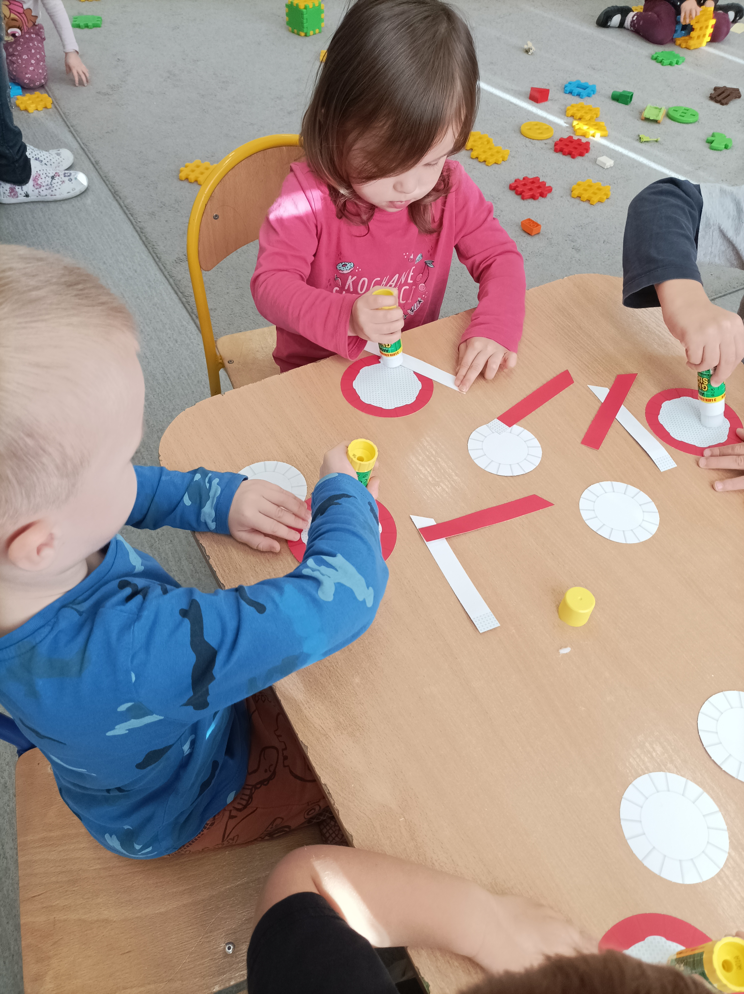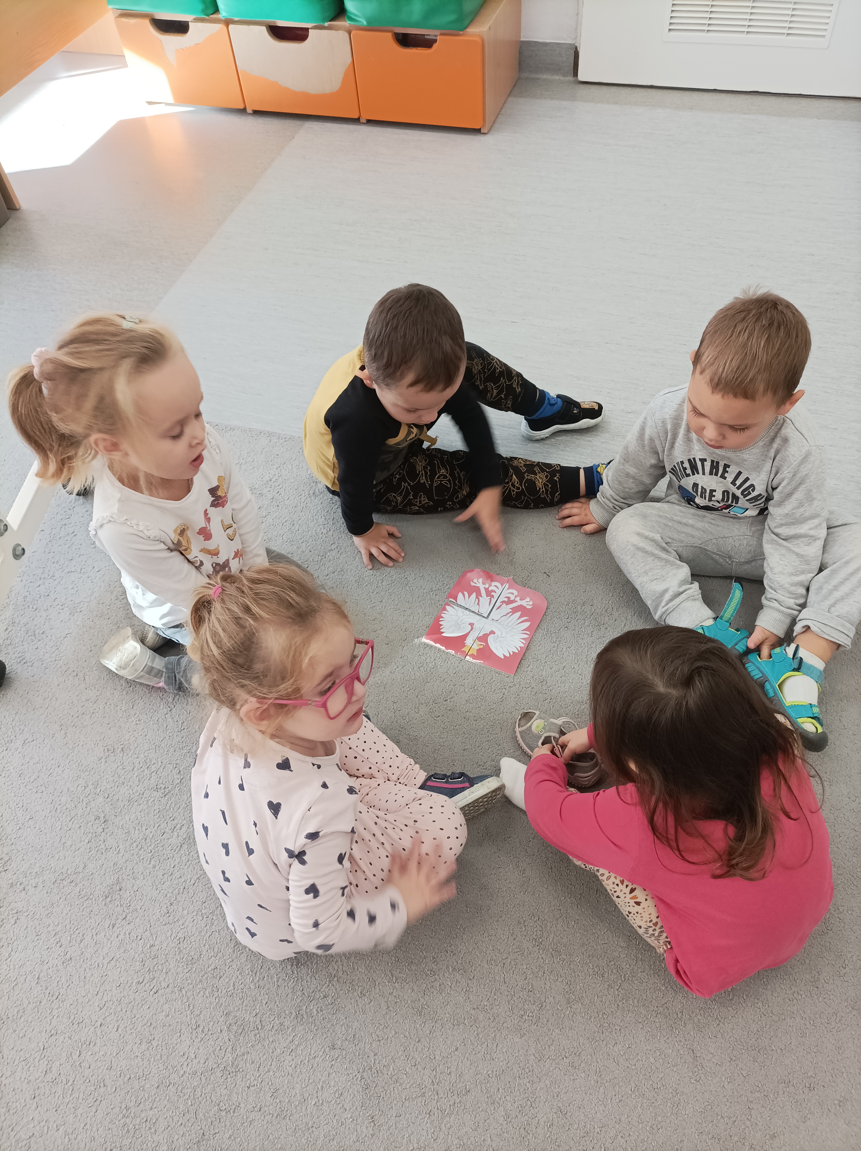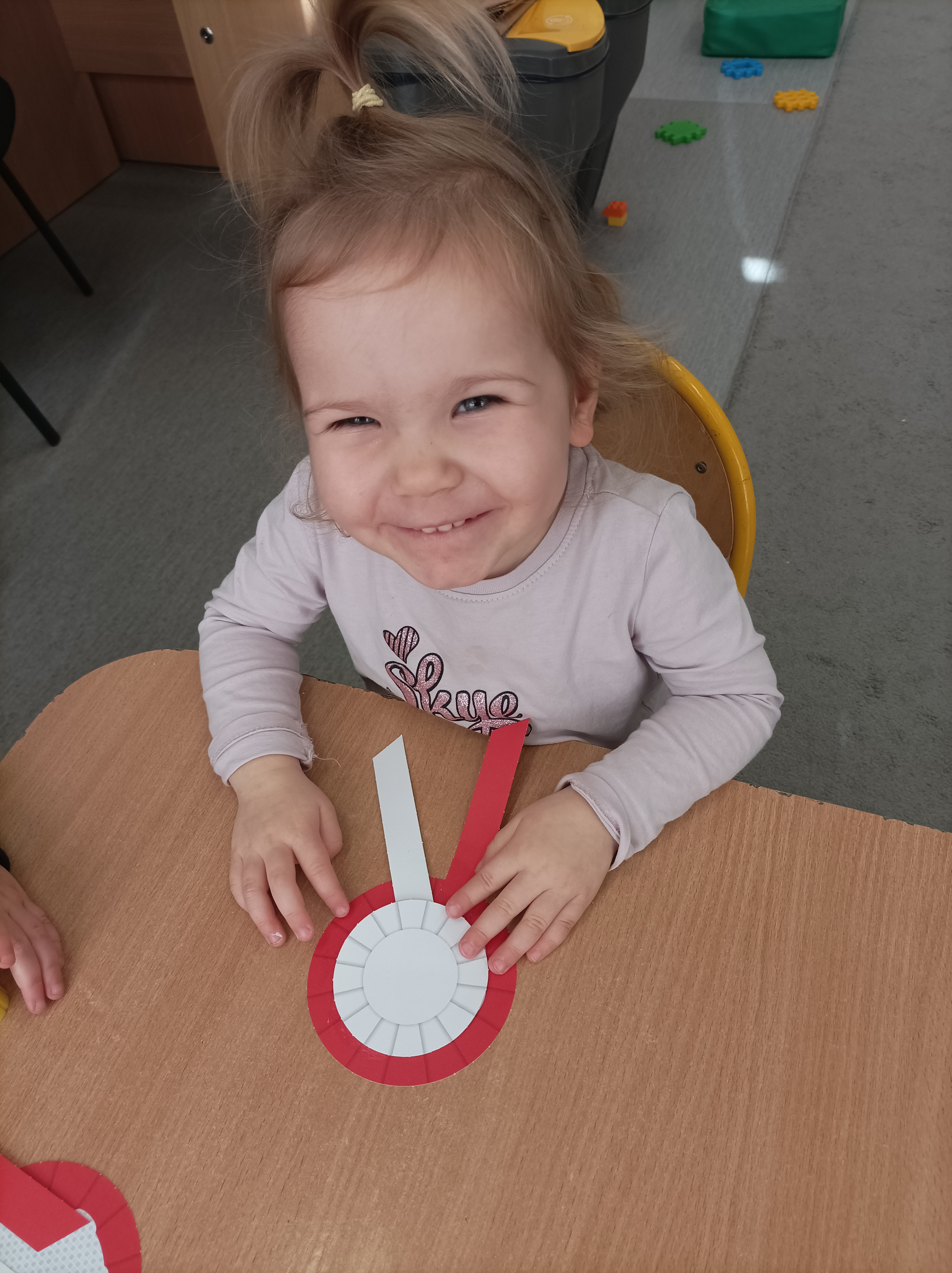 Z okazji zbliżającego się ŚWIĘTA NIEPODLEGŁOŚCI Żabki wykonały flagi naszego kraju Polski poprzez odbicie swojej rączki oraz wysłuchały hymnu polskiego Mazurka Dąbrowskiego. Poznały też godło Polski, kolory znajdujące się na fladze, stolicę i krajobrazy, które podziwiać możemy w naszej OJCZYŹNIE. A najważniejsze, że wiedzą że są i czują się POLAKAMI !!!